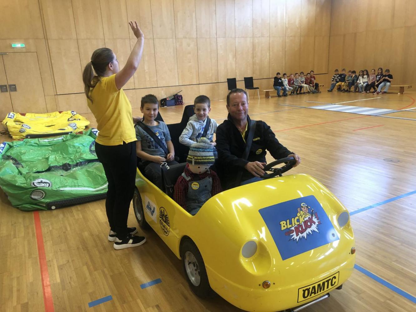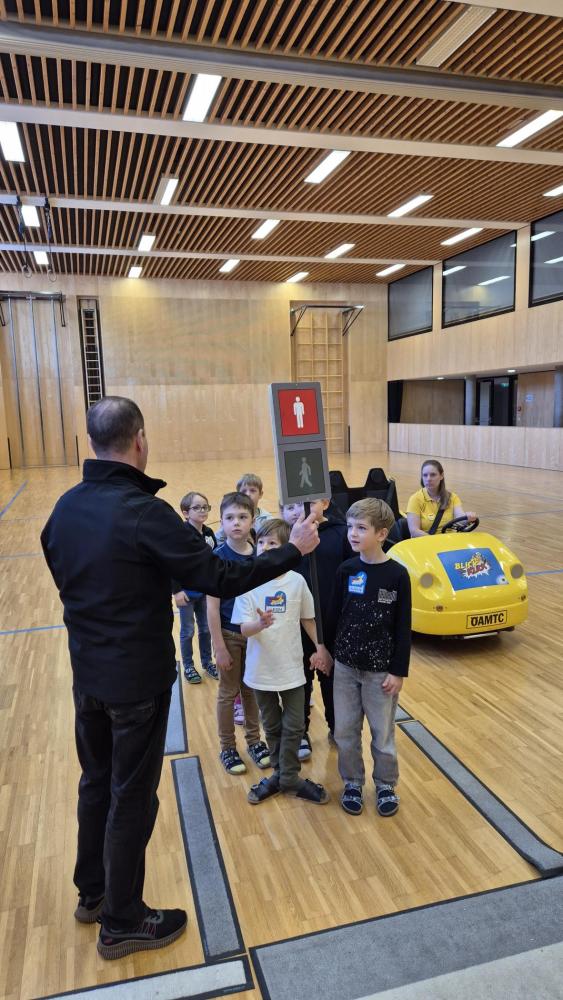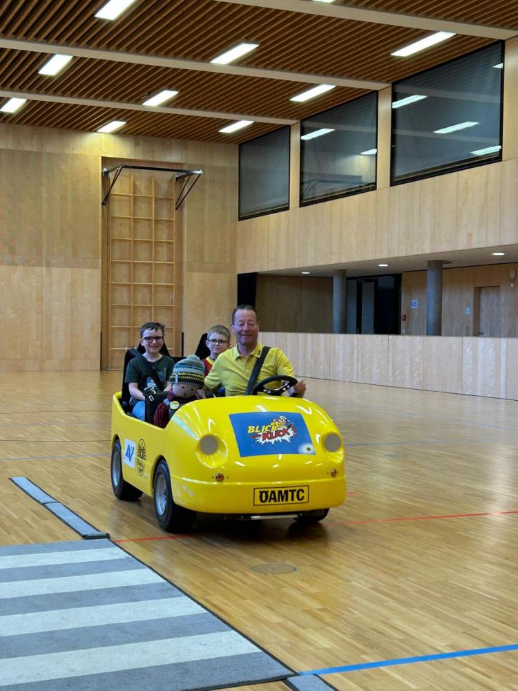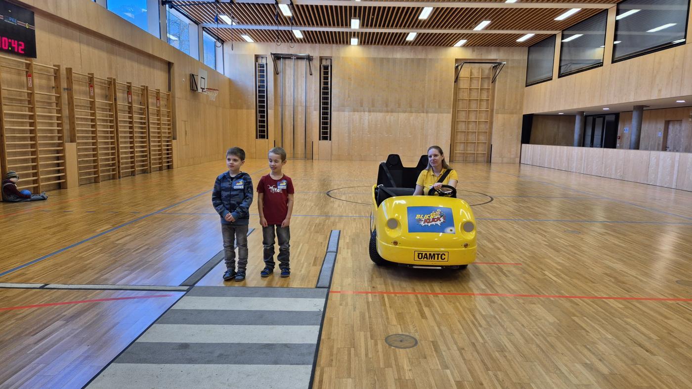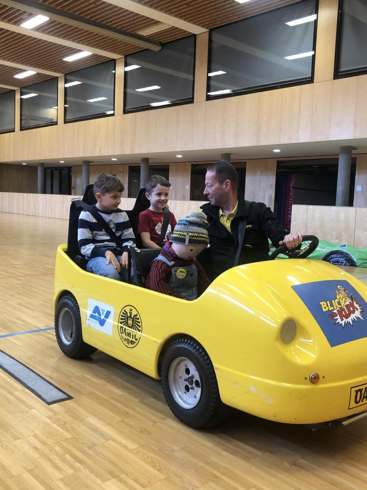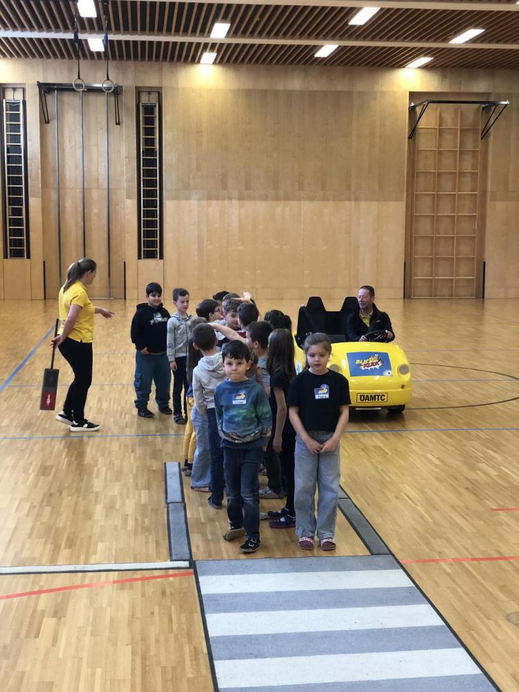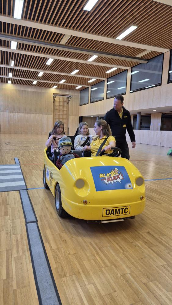 Im ersten Workshop besuchte uns der ÖAMTC mit dem Programm "Blick und Klick". Auf spielerische Weise lernten die Kinder, wie man sich sicher im Straßenverkehr verhält. Außerdem wurde geübt, wie man richtig ins Auto einsteigt und sich korrekt anschnallt. Dabei erfuhren die Kinder auch, warum Aufmerksamkeit im Straßenverkehr so wichtig ist. Ein besonderes Highlight war die Fahrt im gelben ÖAMTC- Auto.