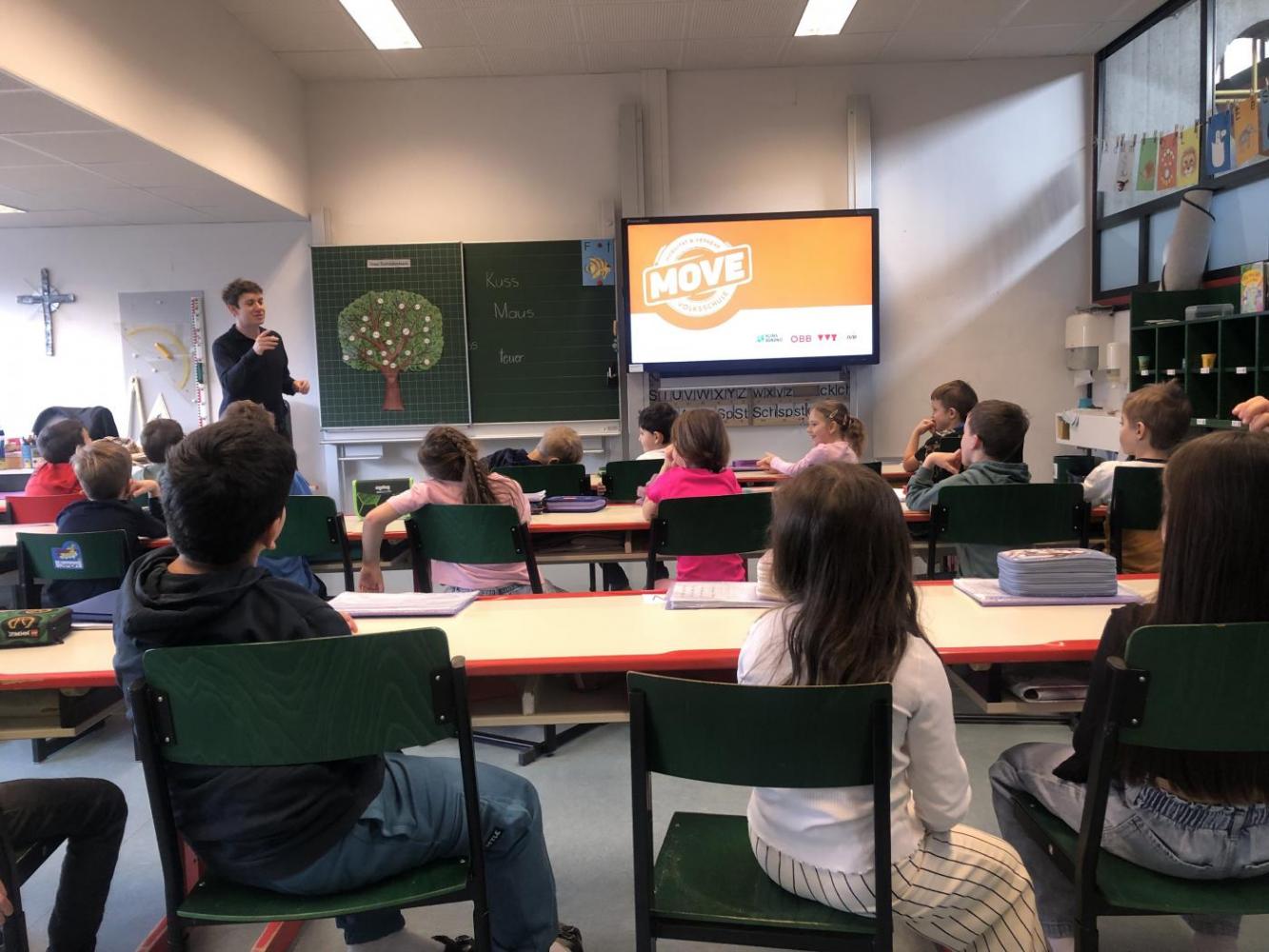 Die Kinder der ersten Klassen nahmen an zwei spannenden Workshops zum Thema Verkehrssicherheit und Mobilität teil.