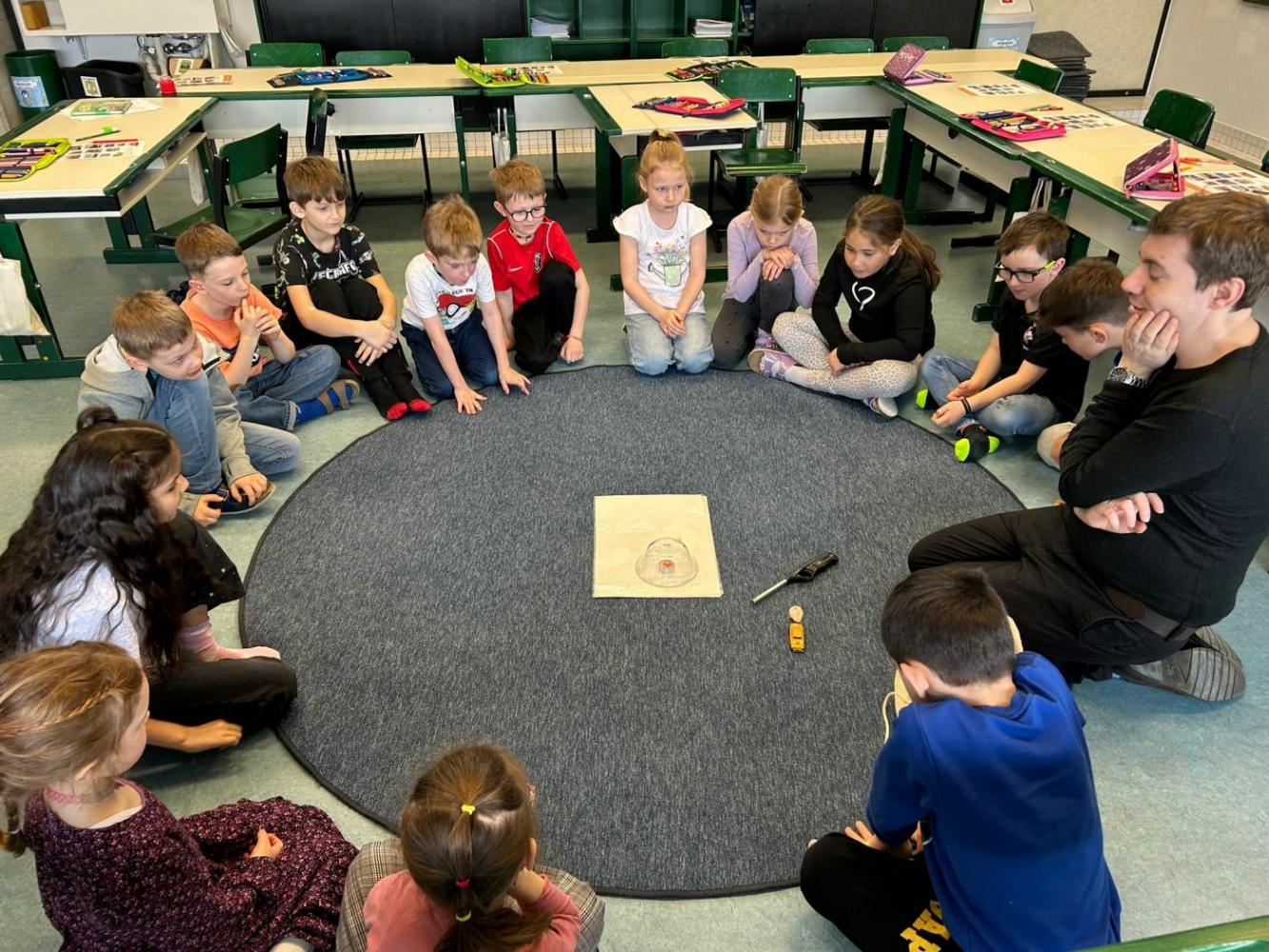Der zweite Workshop stand ganz im Zeichen von Klimawandel, Verkehrsmittelvergleich und Sicherheit. Bei einem Geräuschequiz, verschiedenen Experimenten und gemeinsamen Gesprächen entdeckten die Kinder welche Verkehrsmittel besonders viel Energie verbrauchen und welche klimafreundlicher unterwegs sind. Am Ende waren sich alle einig: Jetzt sind wir richtige Verkehrsprofis!