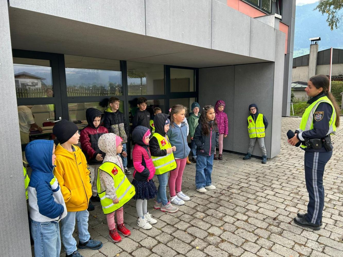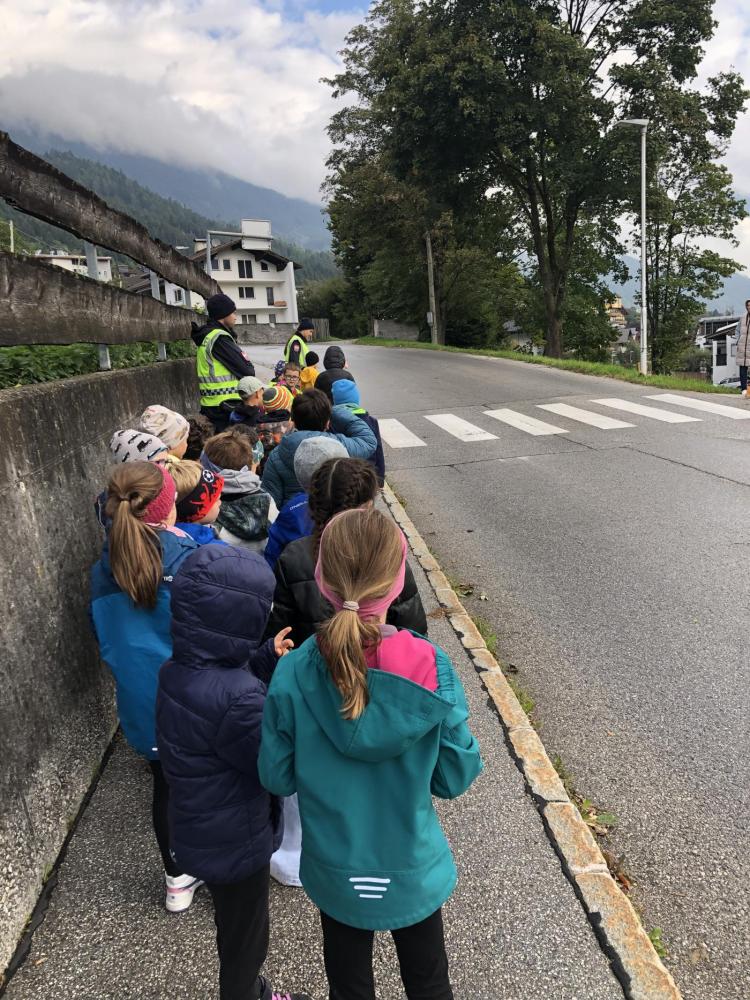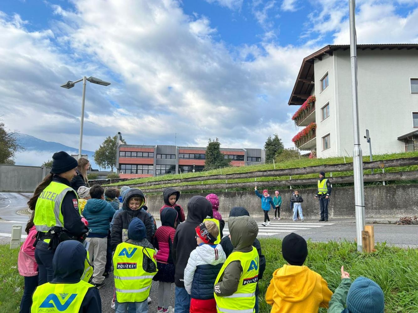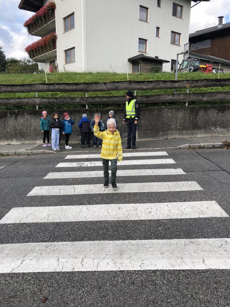 Dann ging es nach draußen: Auf dem Schulweg konnten die Kinder das Gelernte gleich praktisch ausprobieren: Sie übten, den Zebrastreifen richtig zu überqueren und setzten die Tipps der Polizisten direkt um.