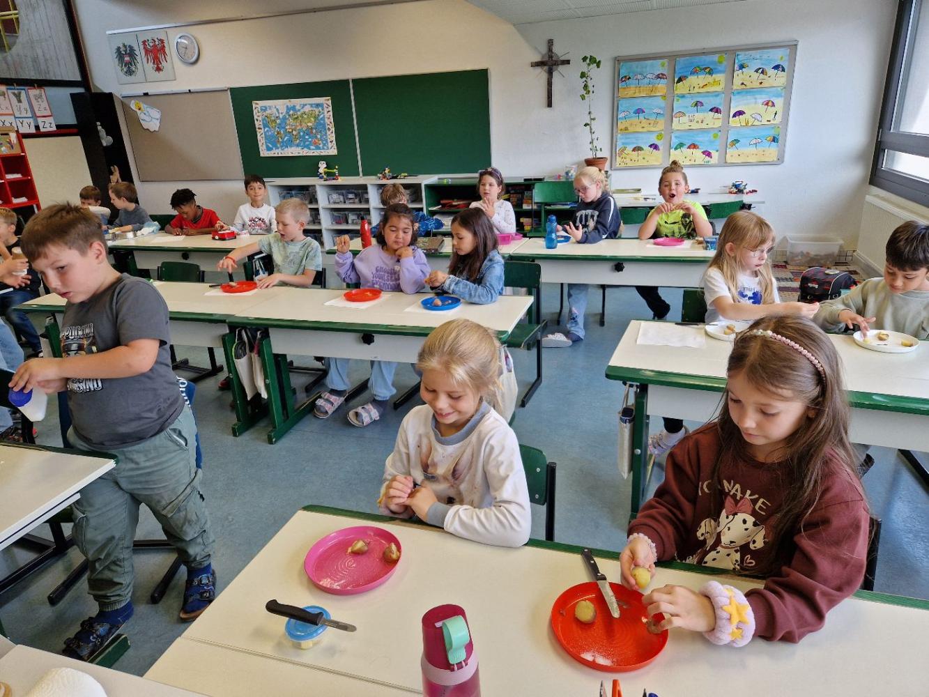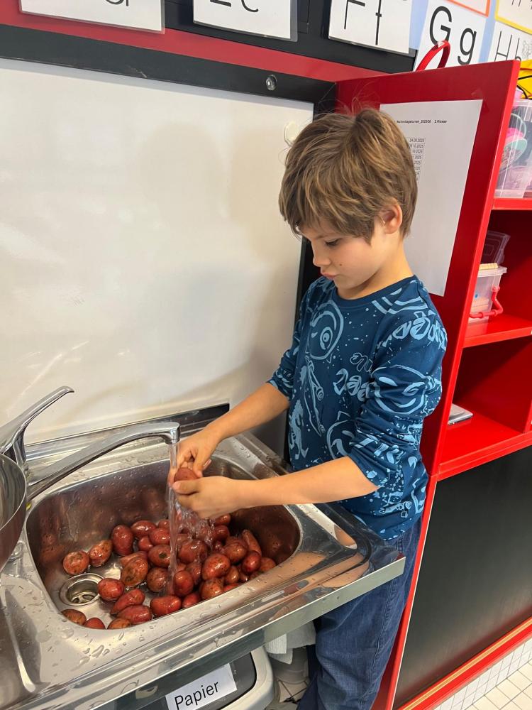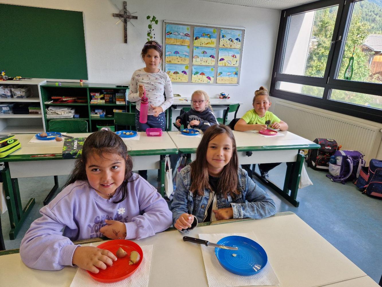 Obst oder Gemüse von Fabrizia Eder 10. Oktober 2025 2c Nachdem sich die Klasse mit dem Thema "Obst oder Gemüse" beschäftigt hat, wurden zum Abschluss frische Bio-Kartoffeln von der Familie Astner gekocht. Das hat uns natürlich allen gut geschmeckt! Danke an Judith und die Familie Astner!