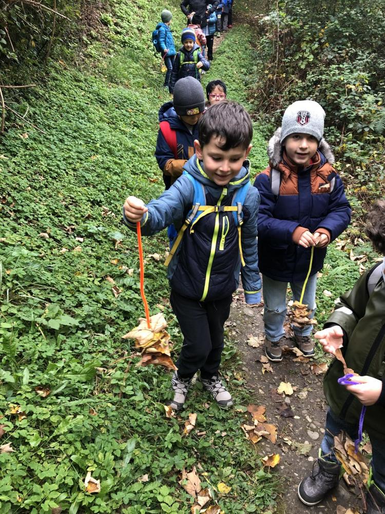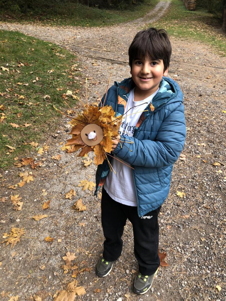 Zum Abschluss sammelten die Kinder bunte Blätter, aus denen sie mit viel Kreativität und Freude kleine Laubigel oder Laubraupen bastelten - ein schöner Abschluss eines erlebnisreichen Tages.