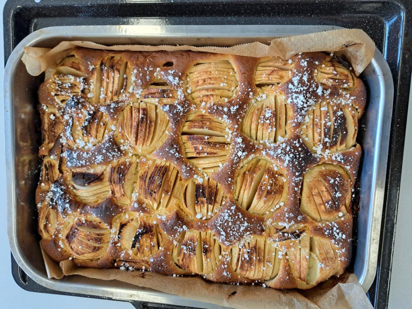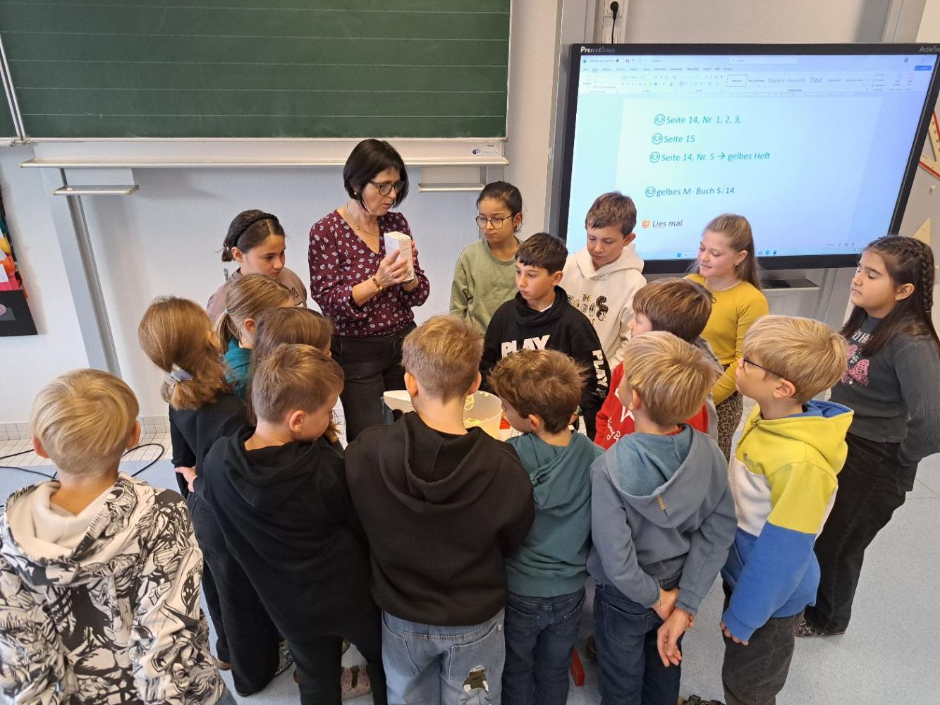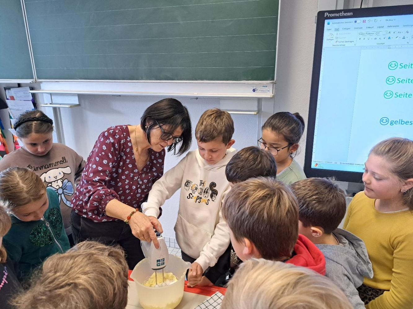 Anlässlich der Apfelwoche haben die Kinder der 3b-Klasse gemeinsam mit ihren Lehrerinnen einen Apfelkuchen gebacken. Gemeinsam wurde der Teig zubereitet, die Äpfel geschält, eingeschnitten und auf dem Kuchenteig verteilt.